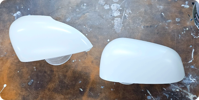 사이드 미러 커버를 준비하고 커스텀 하기전에 이물질을 없애기 위해 세척해줍니다. 기존에 덮혀있던 도장도 깨끗히 연마해줍니다.