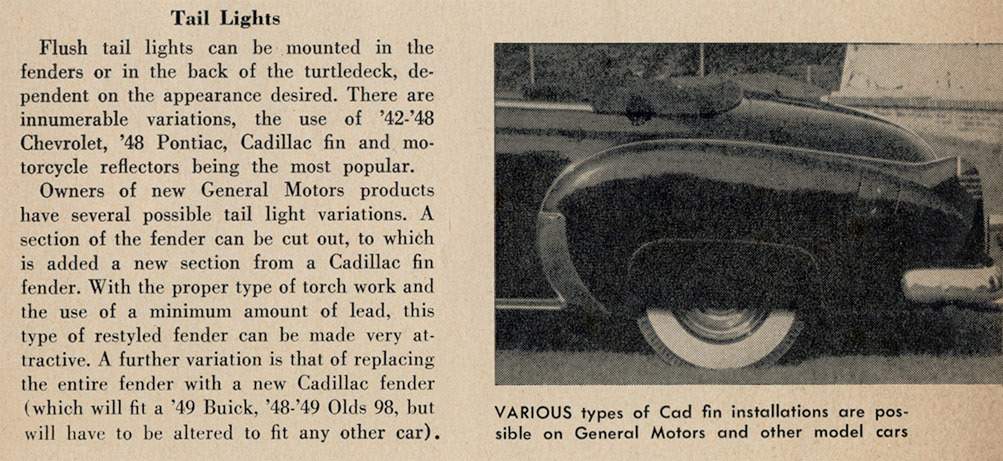 1949-52년형 GM의 하위 모델들은 캐딜락 리어 휀더와 테일라이트 커스텀을 자연스럽게 적용했으며, 많은 애프터마켓 테일라이트가 많은 차에 커스텀 되었다.