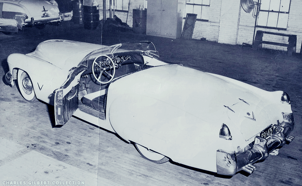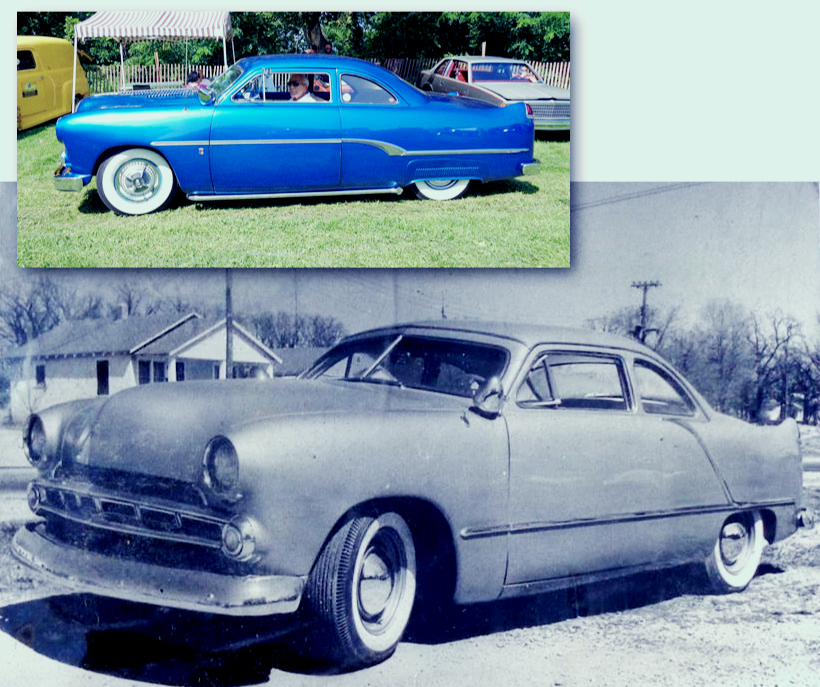 1948년형 캐딜락의 휀더, 라이트, 리어 범퍼가 적용된 46-48년형 포드 커스텀. 커스텀 된 리어 휀더가 컨버터블의 모습을 극적으로 변화시켜, 차가 훨씬 더 길고 낮으며 고급스러워 보이게 만들었다.
