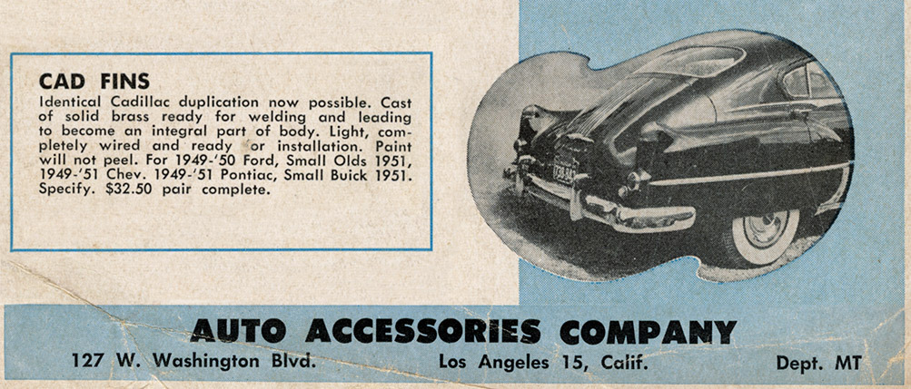 Motor trend 1952 년 4 월호에서는 캐디 테일 핀의 사용이 표준 커스터마이징 트렌드라고 했다.